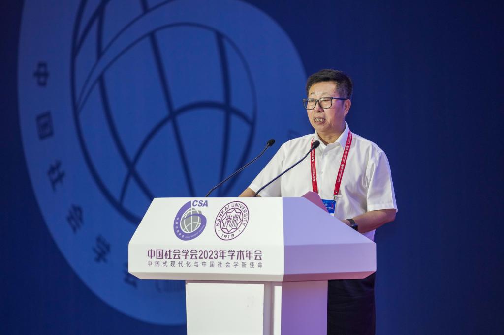 王立文在致辞中表示,当今中国正经历我国历史上最广泛而深刻的社会变革,当下社会也正进行着人类历史上最为宏大而独特的实践创新,作为中国式现代化进程中的参与者、见证者,广大社会学界专家学者立足学科优势,紧扣时代脉搏,从我国改革发展的实践出发,以社会学特有的方式回应时代课题。立足新征程,期盼专家学者坚定文化自信,聆听时代声音,积极投身中国特色社会主义伟大实践,关心关注现代化建设的新进展、新成效、新亮点、新案例,深入推动中国式现代化的社会学表达,更好地用中国理论阐释中国精神、中国价值、中国力量。