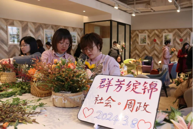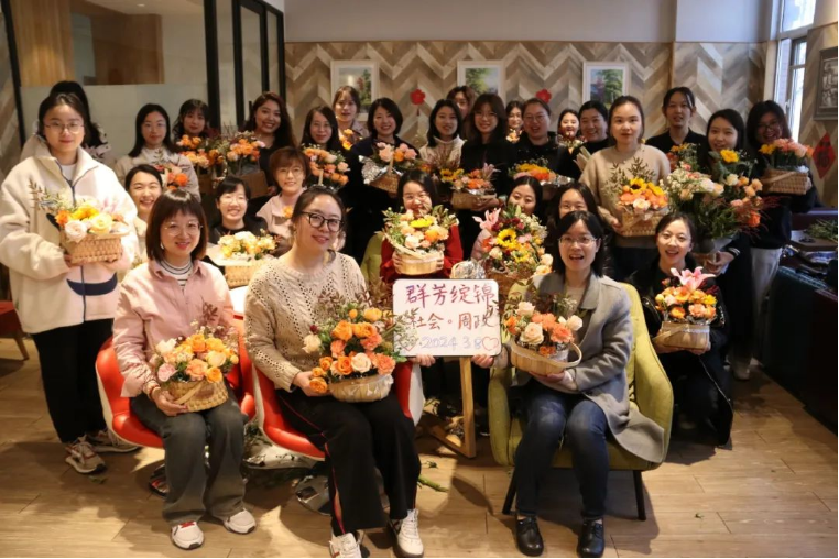 3月8日,为庆祝第114个“三八”国际劳动妇女节,bw必威西汉姆联和周恩来政府管理学院工会联合举办了的“群芳绽锦”花艺美育活动。两院女教工和女同学在花香弥漫中同庆节日、共品艺术,畅聊收获、感悟生活,陶冶情趣、舒缓压力。