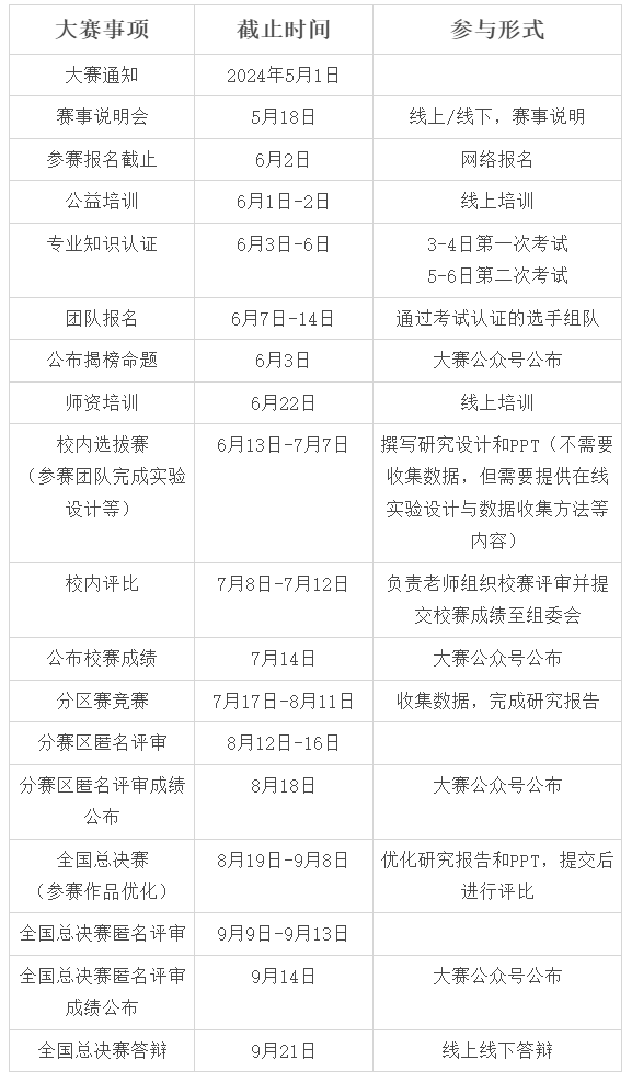 注:具体比赛时间安排请及时关注大赛公众号通知,以公众号实际公布时间为准。