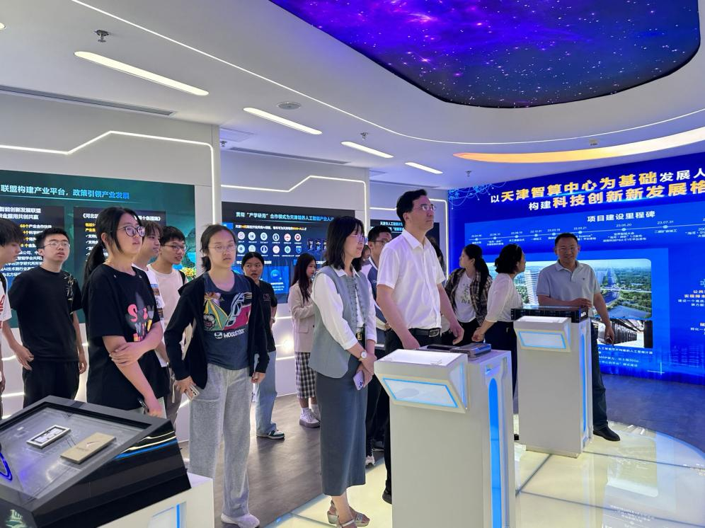 天津以智能为未来赋能,积极建设天津市人工智能计算中心,发展新产业,赋能全行业。天津市人工智能计算中心汇聚了众多前沿的人工智能技术和应用,为天津实施制造业高质量发展、科教兴市人才强市、实施港产城融合发展、中心城区更新提升行动等方面注入了核心引擎,为天津市的数字服务业发展提供了强有力的支撑。同学们在参观过程中,详细了解了人工智能计算中心的硬件设施、软件平台以及其在智慧城市、医疗健康、航运交通等领域推动天津传统企业转型升级的广泛应用。此次参观不仅加深了同学们对人工智能技术的理解,更让同学们对天津市在打造数字服务业升级转型方面的努力和成就感到由衷地钦佩。