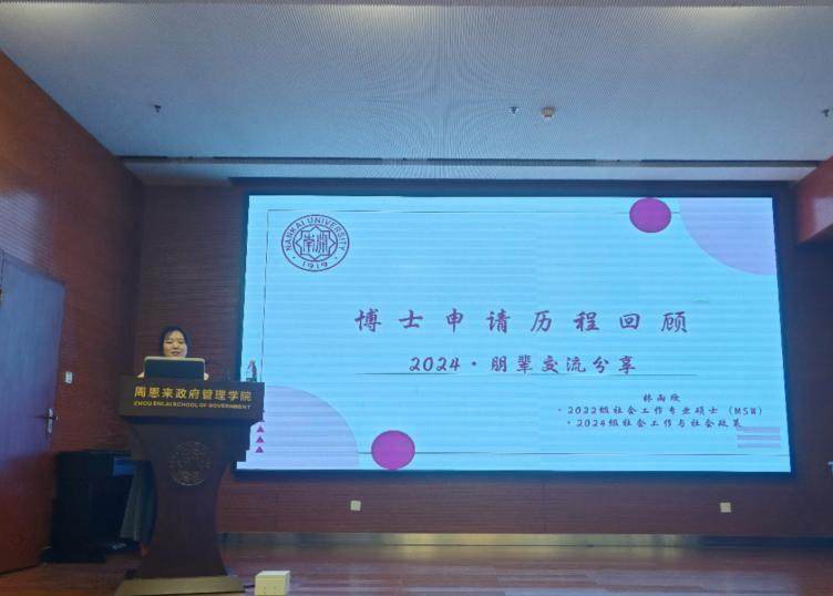 在朋辈经验分享会上,林雨欣从读博准备、申博过程、心态调整几个方面分享了自己申博的经验教训,提出自己因为感受到社工专业学习对自身和生活的正面影响,很早确定了读博的想法,于是参加了许多专业读博相关讲座论坛,在此过程中强化了决心,也提高了研究能力。