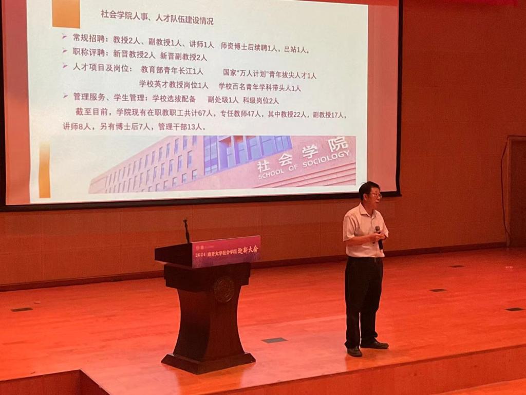 院长张文宏对新学年的工作重点和发展方向进行了全面部署和展望。张文宏总结了学院在多个方面所取得的成绩,介绍了学院落实国家级高层次人才倍增计划、学科集约化高质量发展行动计划、本科创新人才培养体系升级、研究生教育高质量发展行动计划、以及学院在“十四五”规划下优质教材建设、自主知识体系构建与智库建设、重点领域评价改革等方面的进展。他鼓励全体教师继续努力,协力推动学院实现新阶段发展目标。