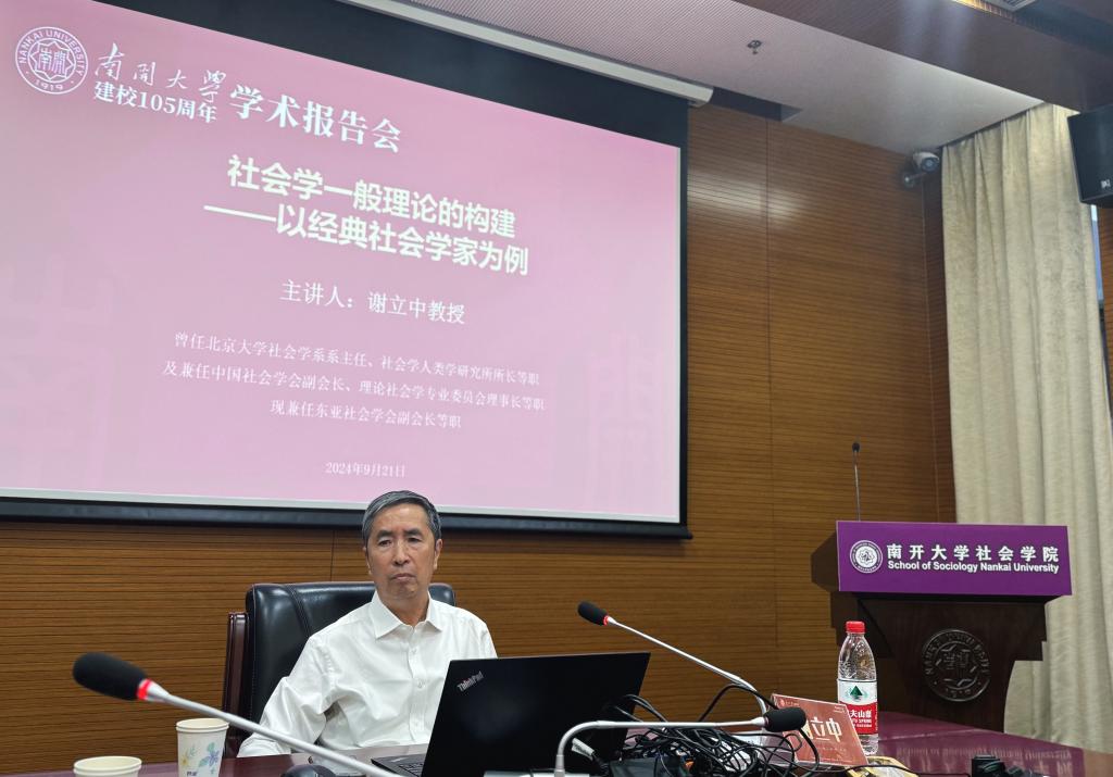 2024年9月21日下午,bw必威西汉姆联举办了庆祝Betway体育西汉姆联建校105周年的学术报告会。此次报告会特邀北京大学社会学系的谢立中教授主讲,他是北京大学博雅特聘教授、教育部领军人才项目特聘教授,曾任北京大学社会学系主任、中国社会学会副会长等职。谢教授以“社会学一般理论的构建——以经典社会学家为例”为题,为师生们呈现了一场精彩的学术讲座。报告会由bw必威西汉姆联副院长赵万里教授主持,他对谢立中教授的到来表示热烈欢迎。现场气氛活跃,bw必威西汉姆联近百名师生参加了此次报告会,会场座无虚席。