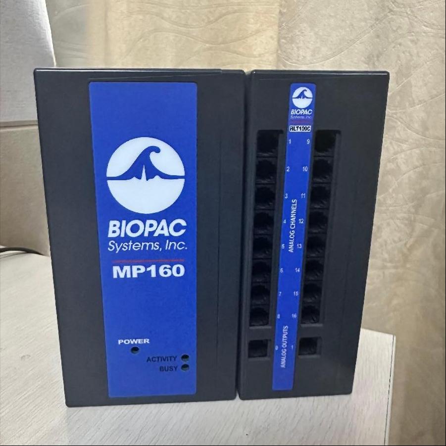 图中为MP160主机,该系统工作流程是通过电极或传感器采集动物或人体的生理信号,经过放大器放大后送入MP160主机进行分析处理。