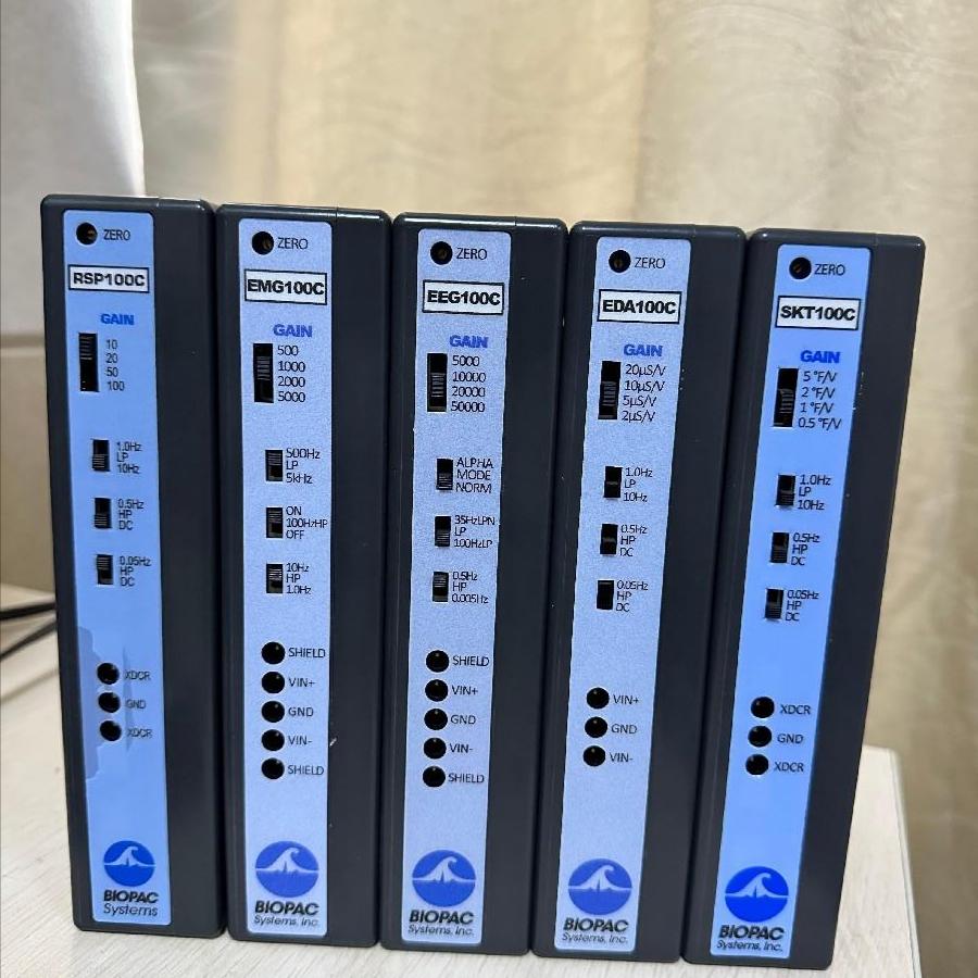 EDA100C:用于皮肤电反应(Electrodermal Activity, EDA)信号采集,通常用于测量皮肤的电导变化,反映情绪或压力反应。