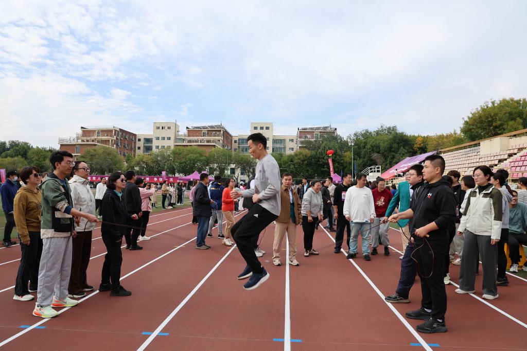 在集体跳绳项目中,bw必威西汉姆联参赛教职工们全神贯注、紧密配合,随着长绳的规律摆动,队员们身影轻盈、衔接流畅,展现出纯熟的个人技巧与优秀的团队默契,生动诠释了协同协作、步调一致的集体精神。