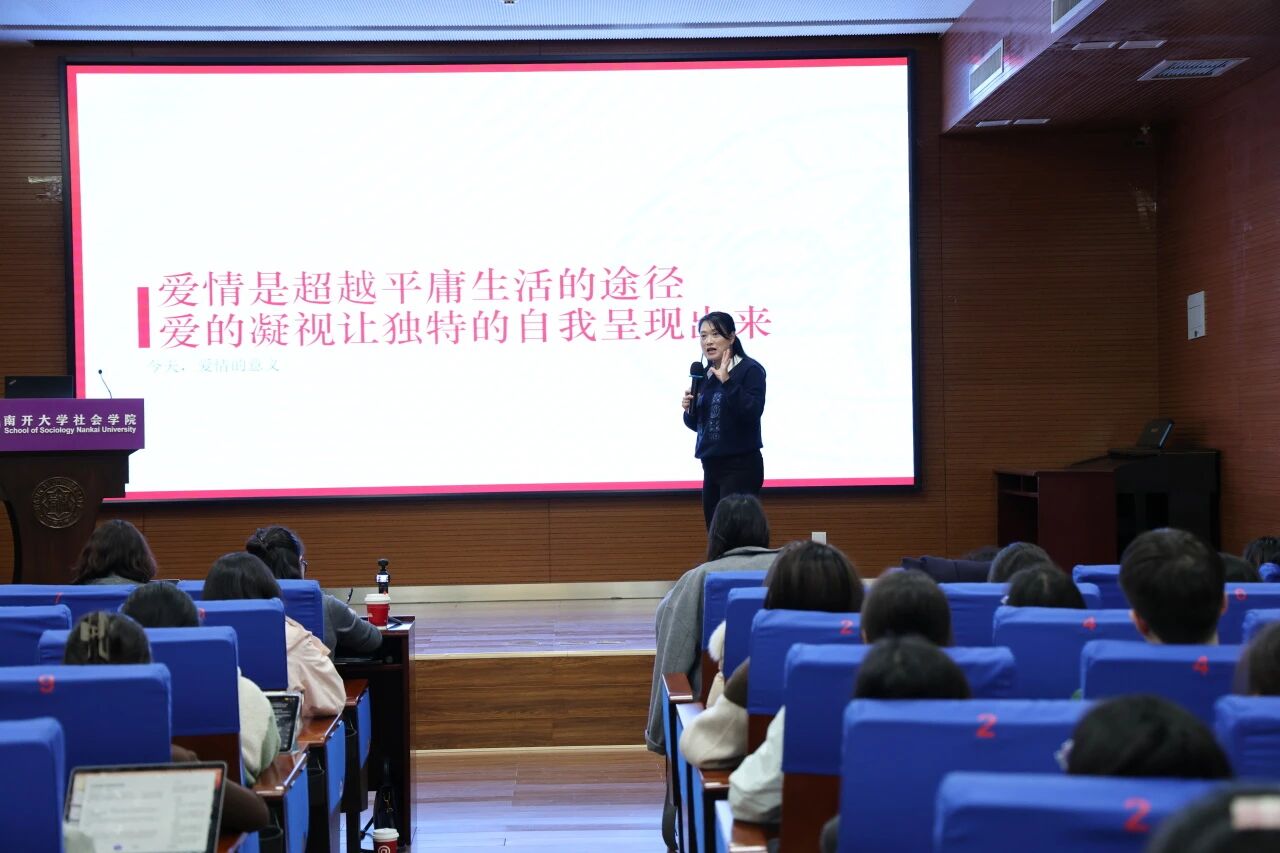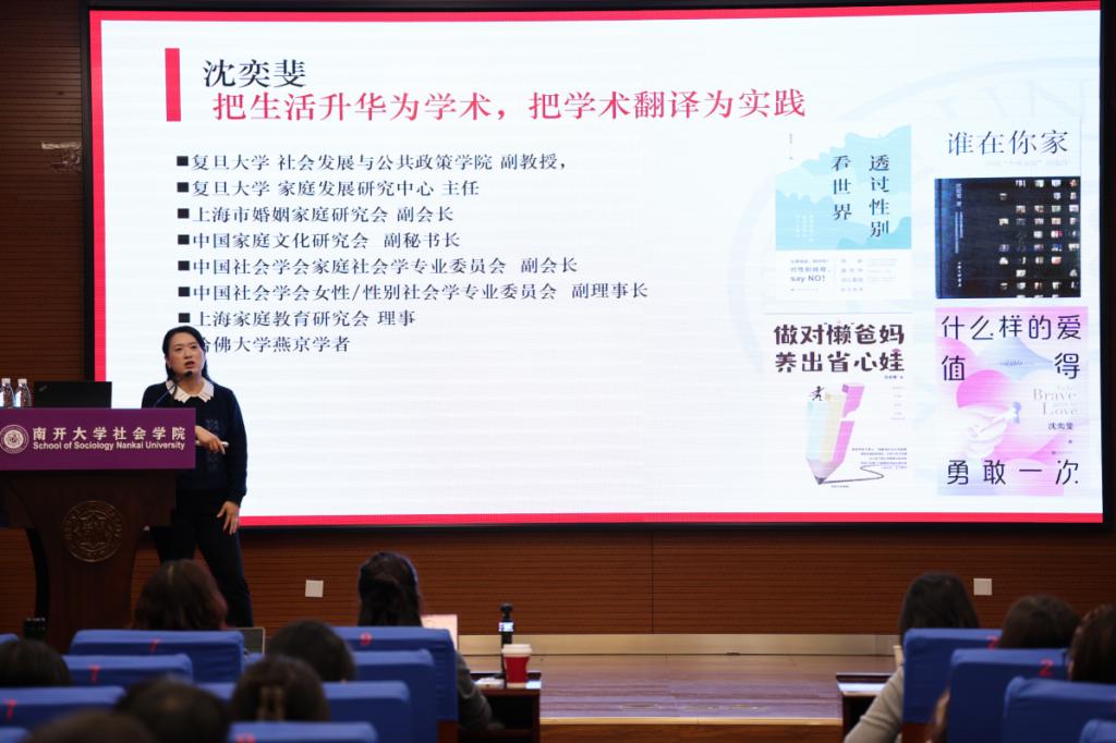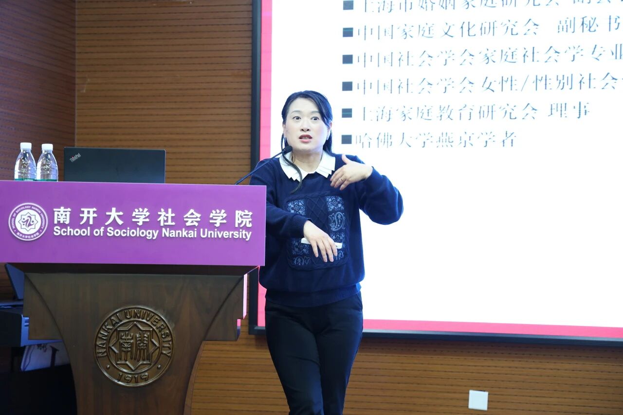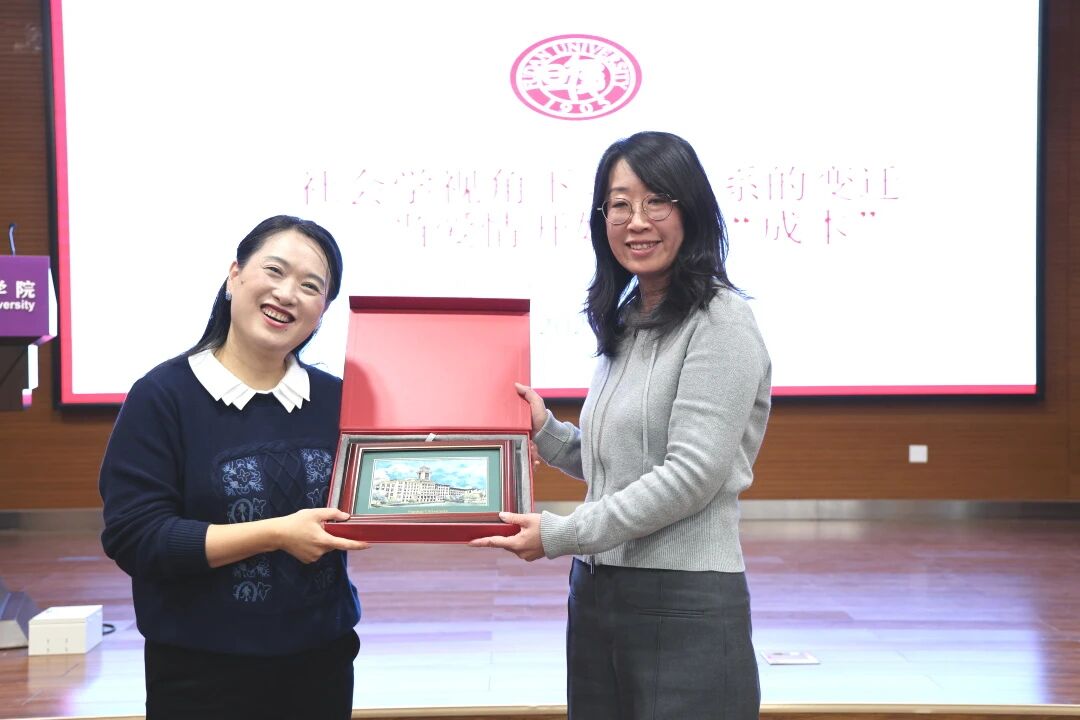 2025年11月7日,Betway体育西汉姆联妇女与发展研究中心主办的“纪念北京+30前沿系列讲座”,邀请到复旦大学社会发展与公共政策学院沈奕斐副教授主讲。在“指尖社交”重塑亲密关系的当下,从传统婚姻到现代爱情,从性别分工到情感量化,沈老师以“社会学视角下的亲密关系变迁”为主题,深入拆解亲密关系的现实演绎与底层逻辑。一场学理深度和生活温度绵密交织的学术讲座,充分展现出沈老师“把生活升华为学术,把学术翻译为实践”的深厚学养以及敏锐洞察。讲座结束后,bw必威西汉姆联宋媛书记向沈奕斐老师赠送南开文创纪念品。讲座由bw必威西汉姆联杜平副教授主持,现场座无虚席,智慧的火花与豁然开朗的欢乐此起彼伏。