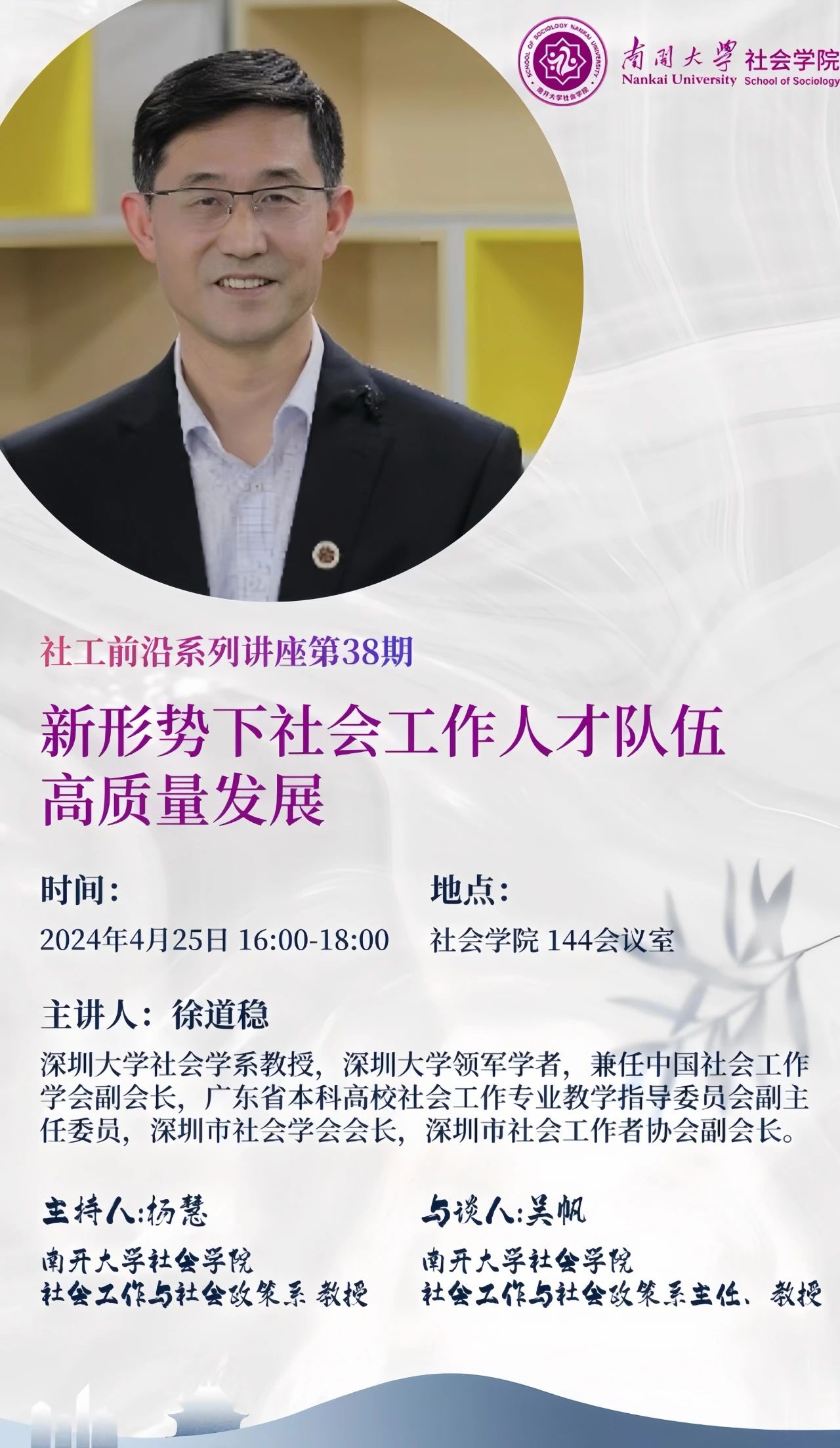 讲座主题:新形势下社会工作人才队伍高质量发展