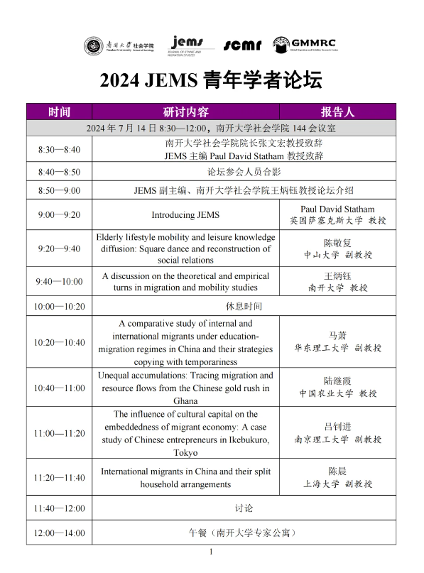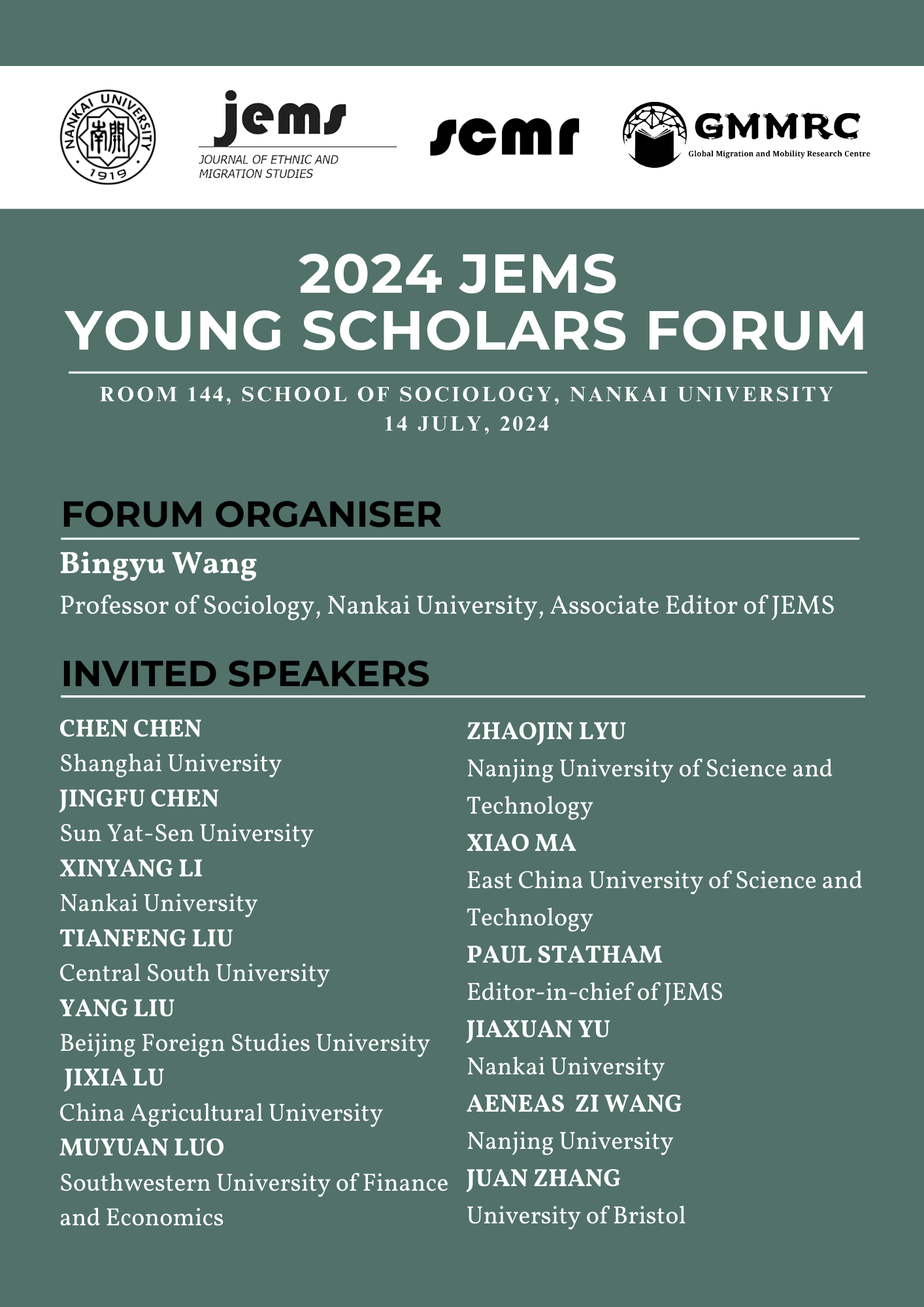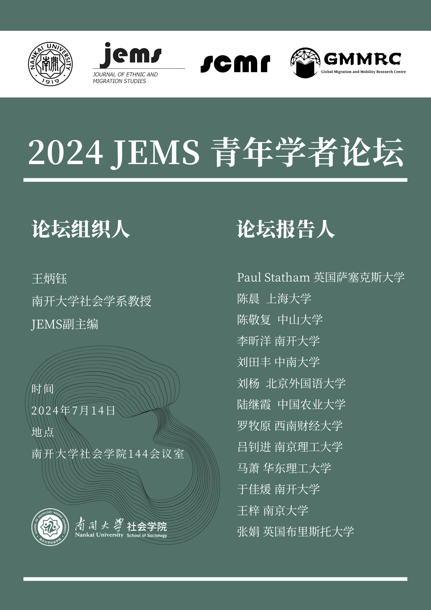 bw必威西汉姆联将于2024年7月14日举办“2024JEMS青年学者论坛”。该论坛以bw必威西汉姆联全球移民与流动研究中心(GMMRC)以及移民研究国际权威期刊Journal of Ethnic and Migration Studies(JEMS)为平台,将聚焦移民与流动等相关研究领域的前沿成果和最新发展趋势,旨在更有效地链接优质海内外学术资源、为学者们提供更多交流和合作的机会。