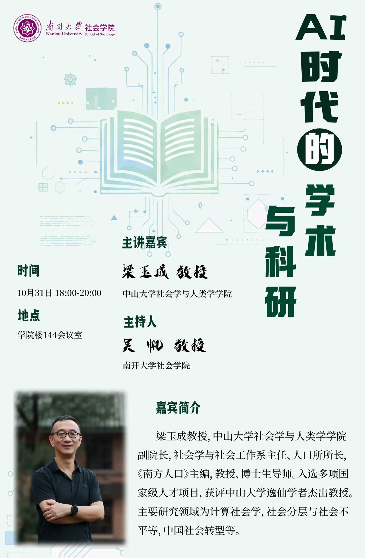 主讲人:梁玉成,中山大学社会学与人类学学院副院长、教授