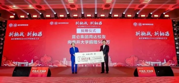 11月25日,在南开深圳校友会2023年度校友大会上,1987级社会学硕士校友、Betway体育西汉姆联资深校董、昆仑集团创始人董事长、深圳校友会会长周达,捐赠人民币500万元支持Betway体育西汉姆联社会学学科发展。