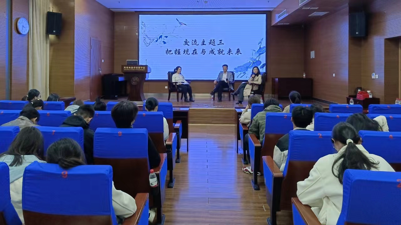 两位嘉宾先后讲述了自己从大学毕业至今的职业生涯历程,并与同学们分享了自己在不同阶段的人生规划和生涯探索经历。胡孝明校友以自己的工作经历为例,详细讲解了如何在职场中不断学习、提升自己,进一步强调了个人能力提升的重要性,提出同学们要注重培养自己的文字写作能力、逻辑能力、跨界思维能力等,努力成长为堪当时代大任的高水平复合型人才。