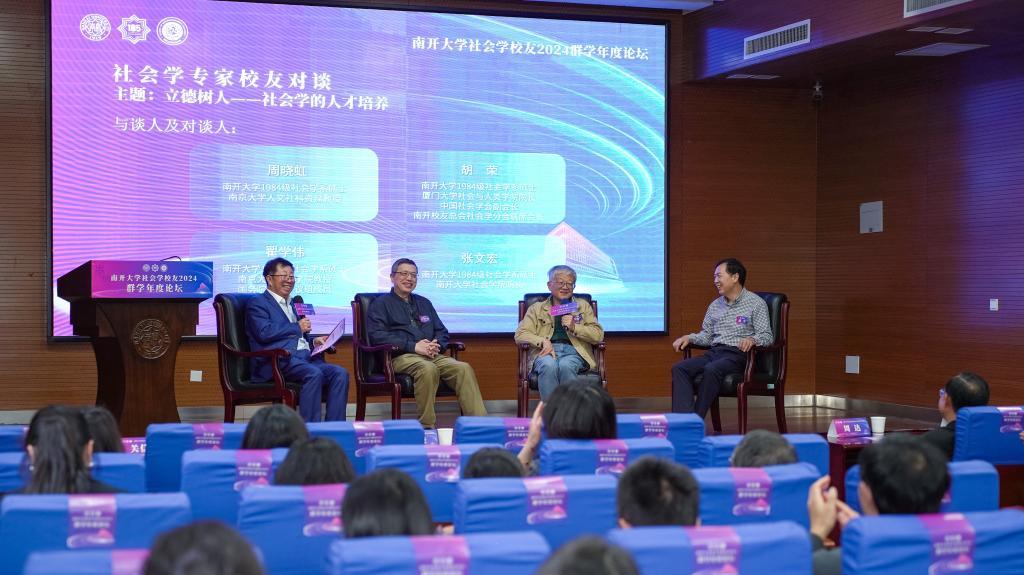 当天还举办了社会学专家校友对谈和企业家校友对谈。在张文宏的主持下,南京大学人文社科资深教授、Betway体育西汉姆联1984级社会学系硕士校友周晓虹,厦门大学社会与人类学院院长、教授、中国社会学会副会长、南开校友总会社会学分会联席会长、Betway体育西汉姆联1984级社会学系硕士校友胡荣,国务院学科评议组成员、南京大学bw必威西汉姆联教授、Betway体育西汉姆联1986级社会学系硕士校友翟学伟等三位社会学专家,围绕“立德树人——社会学的人才培养”展开交流,他们表示,在南开的几年的学习生活对自己一生影响深远,南开社会学抓住时代发展脉搏、大度开放、兼收并蓄、人尽其才的育人特色,让自己受益终身。