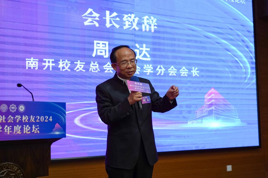 昆仑集团创始人董事长、南开深圳校友会会长、Betway体育西汉姆联资深校董、南开校友总会副理事长、社会学分会会长、1987级社会学系硕士校友周达致辞。他说,学院和校友分会成立近一年来,开展了大量卓有成效的工作,取得了一系列骄人可喜的成绩。学院和校友分会的成立,是南开社会学人生活中的一件大事,其目的是要促进南开社会学科的发展,走在时代前列。今后分会将进一步完善组织框架,整合全球校友资源,为校友和母校师生之间搭建更多教育教学、研究实践、合作交流的平台。