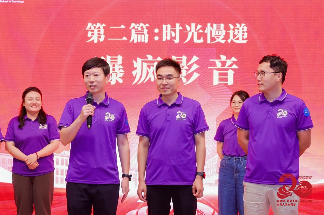 晚会特别邀请了当年三个系的系主任、班导师、任课教师、团委老师及辅导员莅临现场,与来自三个专业的校友共赴青春之约。校友们依次登台报出学号与姓名,熟悉的数字与名字在师生共同的应和中唤醒尘封的记忆,南开园的时光仿佛在这一刻倒流。