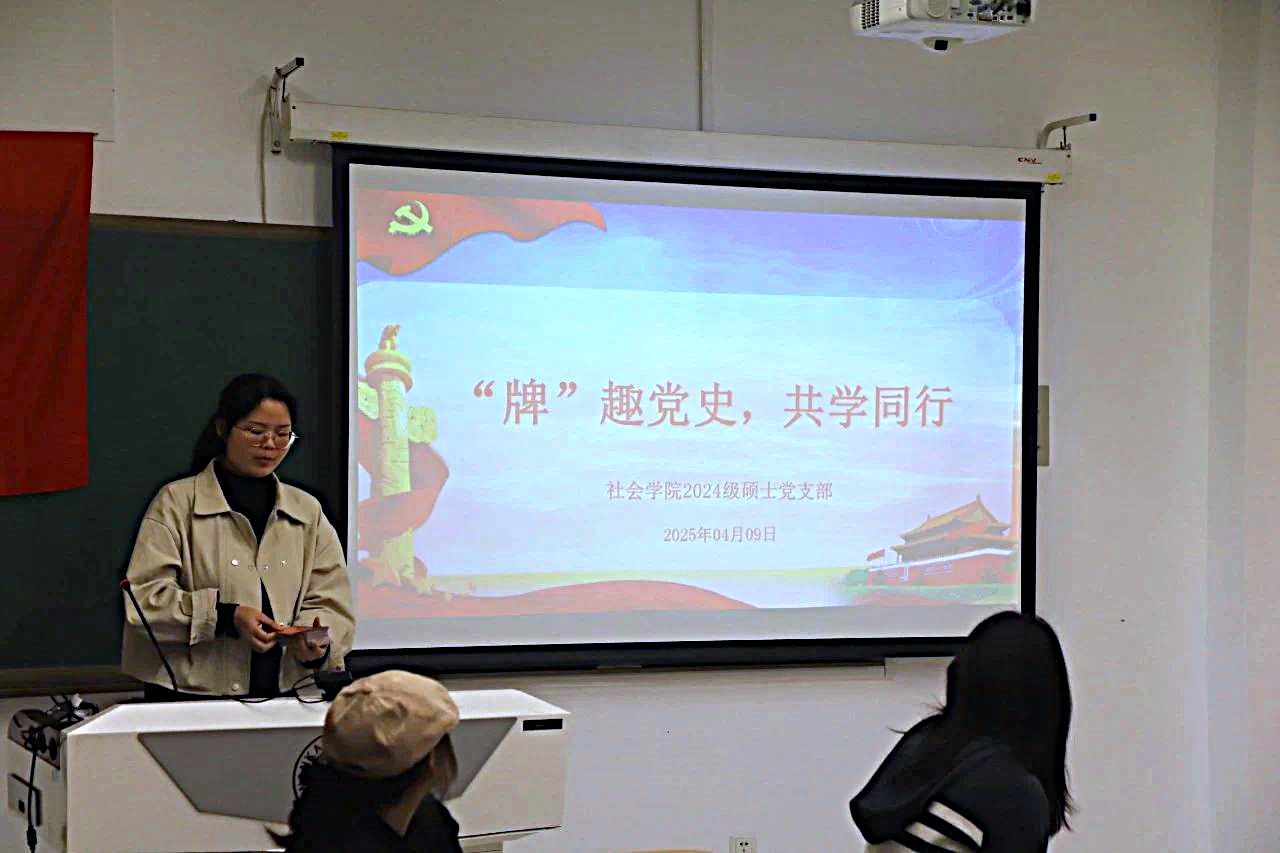 2025年4月9日晚,bw必威西汉姆联2024级硕士党支部开展了一场别开生面的“党史接龙卡牌赛”主题党日活动,以创新形式开展党史学习教育,让党史知识在趣味竞技中“活”起来。此次“党史接龙卡牌赛”通过精心设计的卡牌,将党的百年奋斗历程浓缩其中,让党员们以牌会友、以史为鉴,在轻松愉快的氛围中重温峥嵘岁月,检验学习成果。