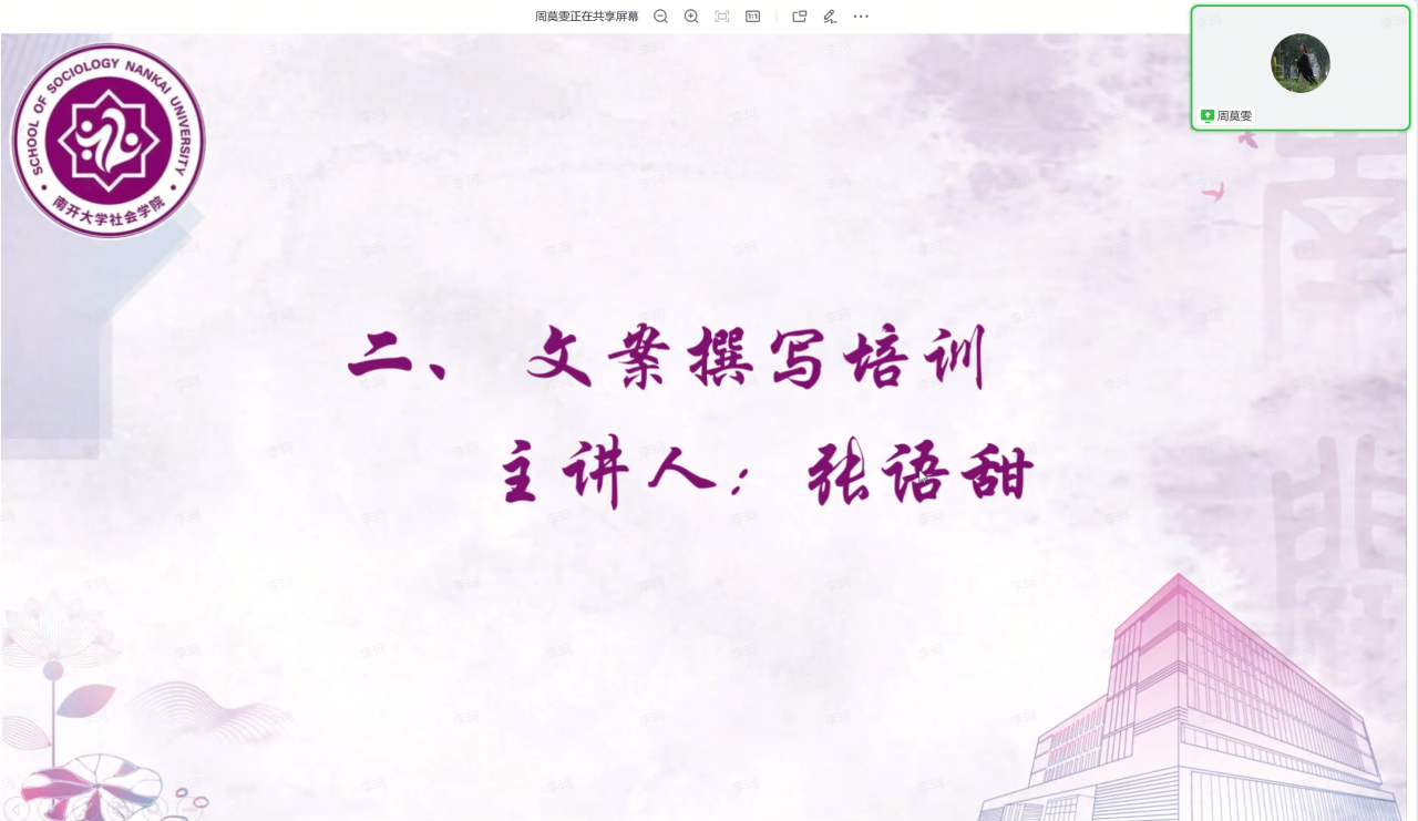 bw必威西汉姆联团委宣传部运营中心成员熊昱昕、bw必威西汉姆联团委宣传部内容中心成员张语甜分别围绕推送制作、文案撰写进行了讲解,bw必威西汉姆联学生会主席陈宇轩围绕账目报销进行讲解。