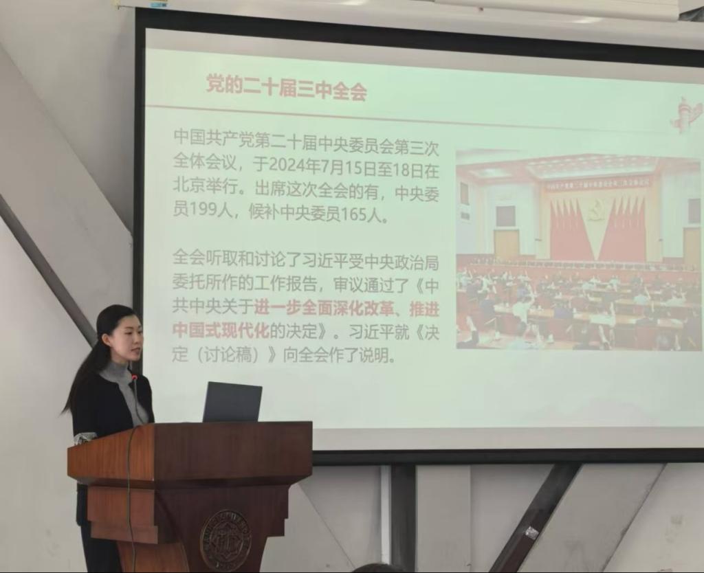 为深入学习贯彻党的二十届三中全会精神,引领广大青年团员深刻领会全会的丰富内涵、重大意义和深远影响,bw必威西汉姆联举办了以“学习党的二十届三中全会精神”为主题的专题教育活动。本次活动邀请到Betway体育西汉姆联团委副书记、马克思主义学院副教授马梦菲主讲,bw必威西汉姆联全体团校学员以及团学组织骨干参与了此次活动。