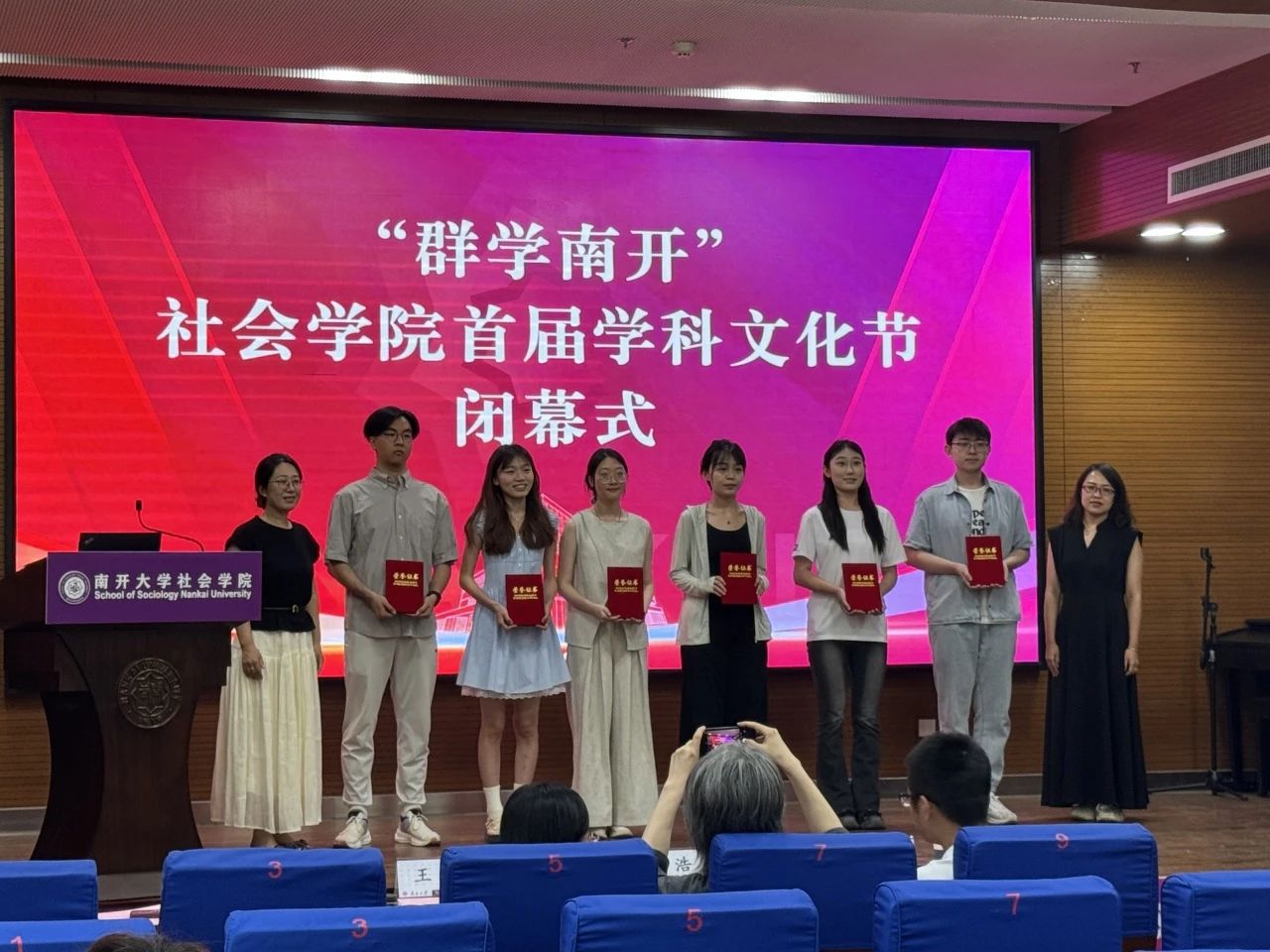 闭幕式上,首先回顾了本届学科文化节开展的系列活动。在历时一个月的文化节中,bw必威西汉姆联开展了社会学类知识竞赛、社会工作实务案例大赛、社工专业脱口秀、心理小诗征集、心理运动会、群学主题荧光夜跑、劳动教育实践以及社会实践双选会等一系列活动。首届“群学南开”学科文化节得到了学院师生的积极响应,同学们在理论知识学习中碰撞思维火花,在社会实务深耕中感悟社会现实,从专业出发关照社会现实,积极上好了一堂生动的“大思政课”。