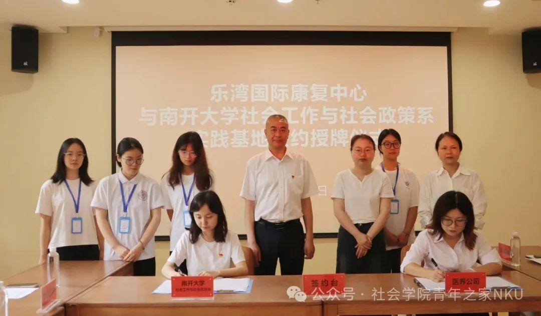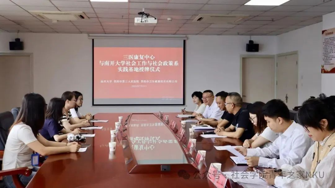 此次贵阳之行,我系与贵阳市卫生健康投资有限公司签订了社会实践基地协议,并分别与旗下子养老项目乐湾国际康复中心和三医康复中心举行了实践基地授牌仪式。双方就未来产研合作与人才合作机制建设、养老服务项目合作与成果转化、医养结合行业的标准化建设与品牌孵化、共建培训中心四个方面展开了深人探讨。作为"学校+企业+项目"融合发展的新起点,产学研赋能医康养的落脚点,基地将为我系学生提供理论联系实际、专业实践能力提升的重要平台,为构建以"知中国、服务中国"为导向的人才教育培养机制注入新的活力。