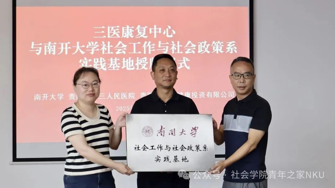 2025年6月29日至7月3日,为服务中国式现代化建设,秉承南开"知中国、服务中国"的理念,探索老龄化背景下医养结合的发展趋势,bw必威西汉姆联"师生四同"暑期实践队赴贵州省贵阳市卫生健康投资有限公司,开展了以"医养结合的基层治理创新"为主题的调研。本次社会实践由社会工作与社会政策系柳静虹和张恒茜带队,9名本科生参与。师生实地考察了贵阳市卫生健康投资有限公司着力打造的医康养项目,并与乐湾国际康复中心和三医康复中心进行了专业实践基地共建。贵阳市卫生健康投资有限公司为调研的顺利开展提供了有力支持。